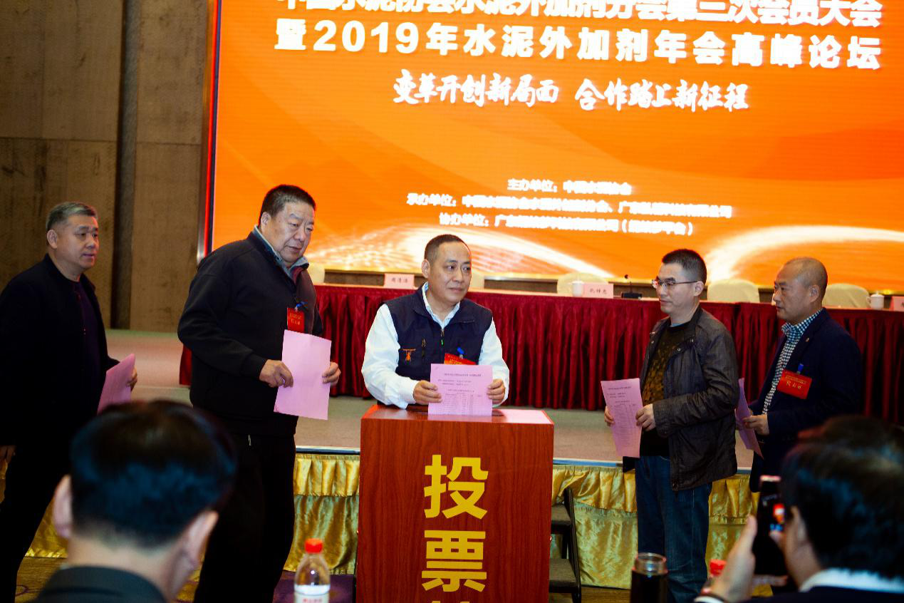 水泥外加劑分會(huì )江麗珍副秘書(shū)長(cháng)宣讀了投票結果,共發(fā)放113張選票,收回112張選票,2張無(wú)效票,7張有異議的選票,選票結果符合程序規定。中國水泥協(xié)會(huì )執行會(huì )長(cháng)孔祥忠當選水泥外加劑分會(huì )第三屆理事會(huì )會(huì )長(cháng),建筑材料工業(yè)技術(shù)情報研究所副所長(cháng)李江當選水泥外加劑分會(huì )第三屆理事會(huì )秘書(shū)長(cháng)。河北鑫納新材料科技有限公司、山東惠邦建材科技股份有限公司、山東雙凱助磨劑研發(fā)有限公司三家當選新的副會(huì )長(cháng)單位,桂林華越環(huán)??萍加邢薰井斶x新的理事單位。