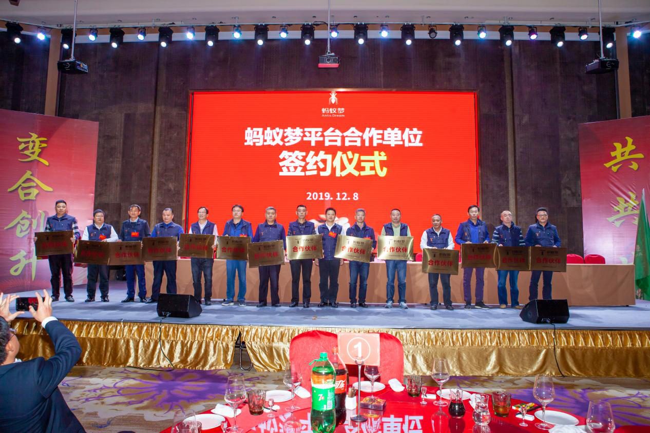 12月8日晚,螞蟻夢(mèng)平臺向與會(huì )代表獻上了一臺精心準備的《螞蟻夢(mèng)﹒萬(wàn)綠情》晚會(huì ),在回憶行業(yè)曲折發(fā)展的歷程中筑夢(mèng)未來(lái);并隆重舉行了湖北統領(lǐng)、江蘇潤天、長(cháng)沙保靈等第一批17家企業(yè)與螞蟻夢(mèng)平臺的簽約儀式。